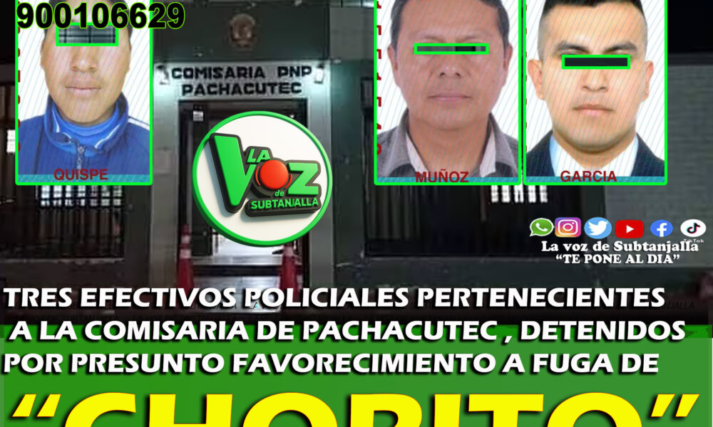 Tres efectivos de la comisaría de Pachacútec fueron detenidos esta mañana por presunto favorecimiento a la fuga del detenido William Huamaní Huamán, de 38 años, acusado...