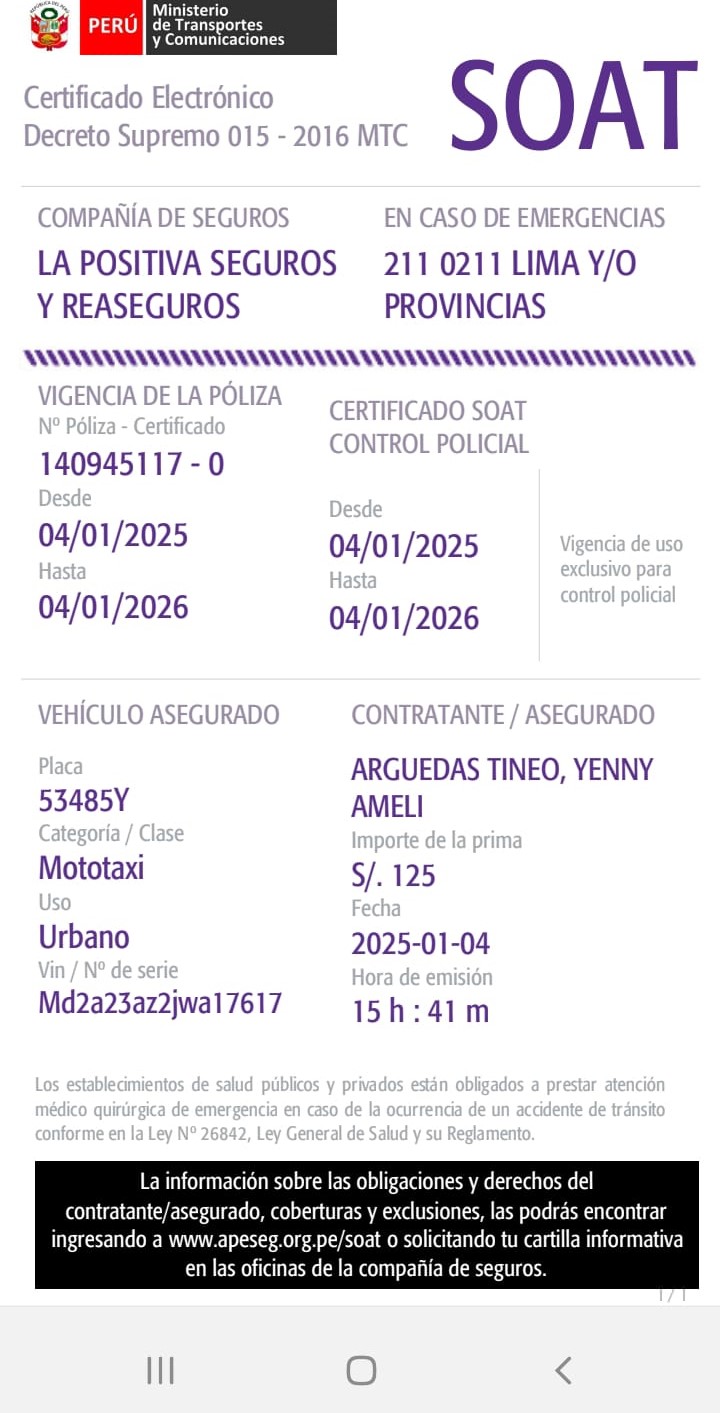 La mototaxi roja, de placa de rodaje 5348-5Y, que pertenece a Ameli Arguedas Tineo, cuyo conductor Jorge Anderson García Ramos ofrecía el servicio sin tener el SOAT vigente.