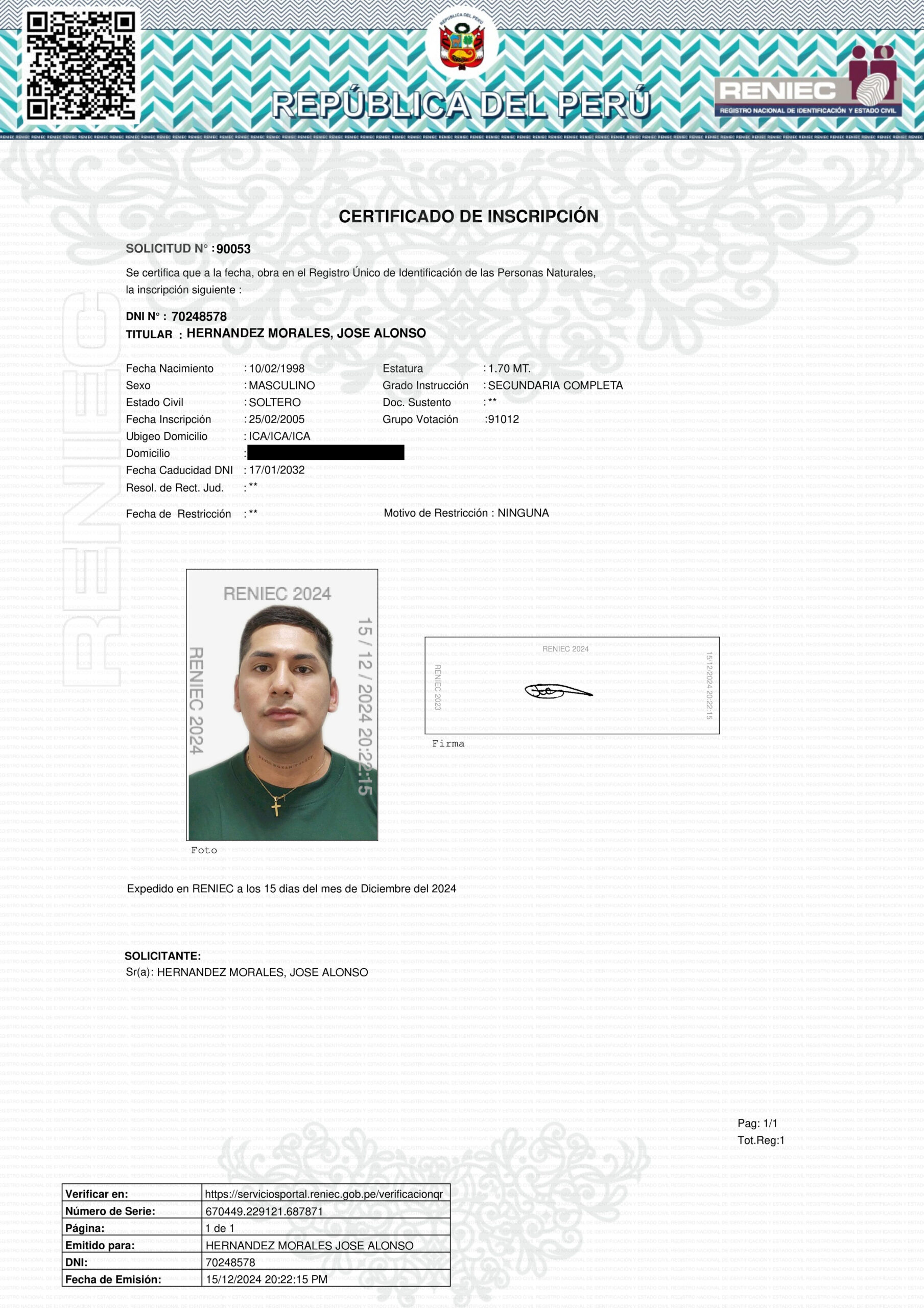 El sujeto contaba con dos requisitorias vigentes: la primera, solicitada por el Primer Juzgado de Investigación Preparatoria de Pisco con fecha 22 de junio de 2024 y expediente número 763-2023; y la segunda, emitida por el Juzgado Colegiado de Chincha con fecha 9 de octubre de 2024, ambas por delito de violación sexual a menor.