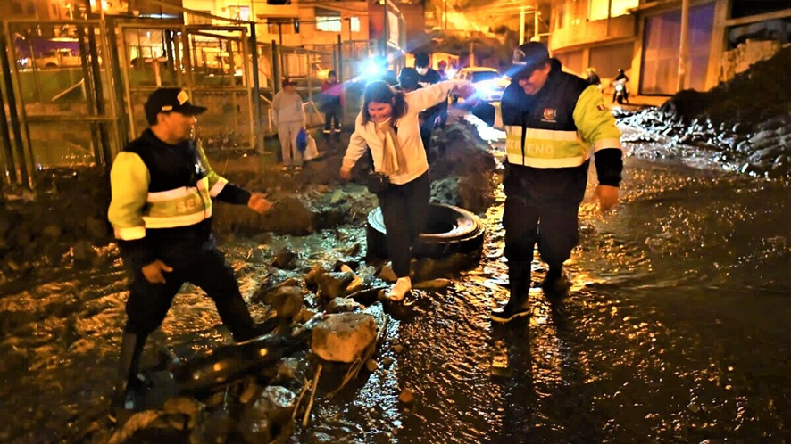La zona de Pozo Negro es una de las más afectadas, donde se aprecia calles repletas de lodo y piedras, además de viviendas inundadas. El tránsito de las personas se ha dificultado, se han colocado llantas para que las personas caminen y muchos niños son cargados por sus padres, según informó América Tv.