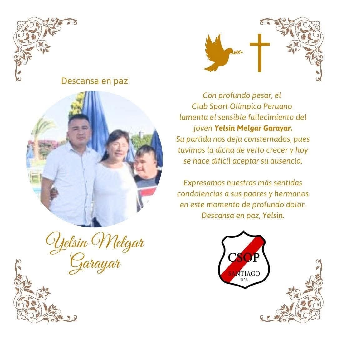 Vuela alto, Yelsin. Gracias por habernos permitido verte crecer. El Club Sport Olímpico Peruano se une al dolor de toda su familia. ![]()