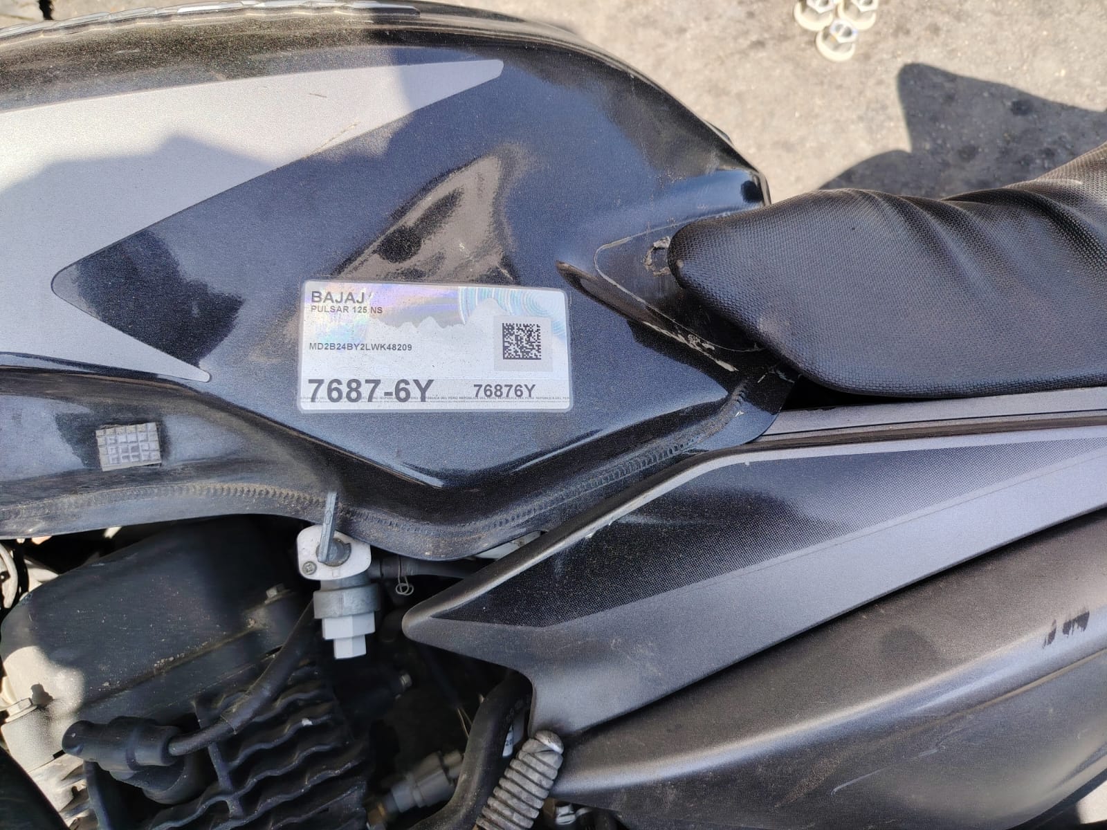 La motocicleta, una Bajaj Pulsar de color negro con placa de rodaje 7687-6Y, también sufrió daños considerables y se encontraba en posición diagonal, inoperativa , su conductor lamentablemente era Yelsin Enrique Melgar Garayar identificado posteriormente como el oficial que no sobrevivió al accidente.