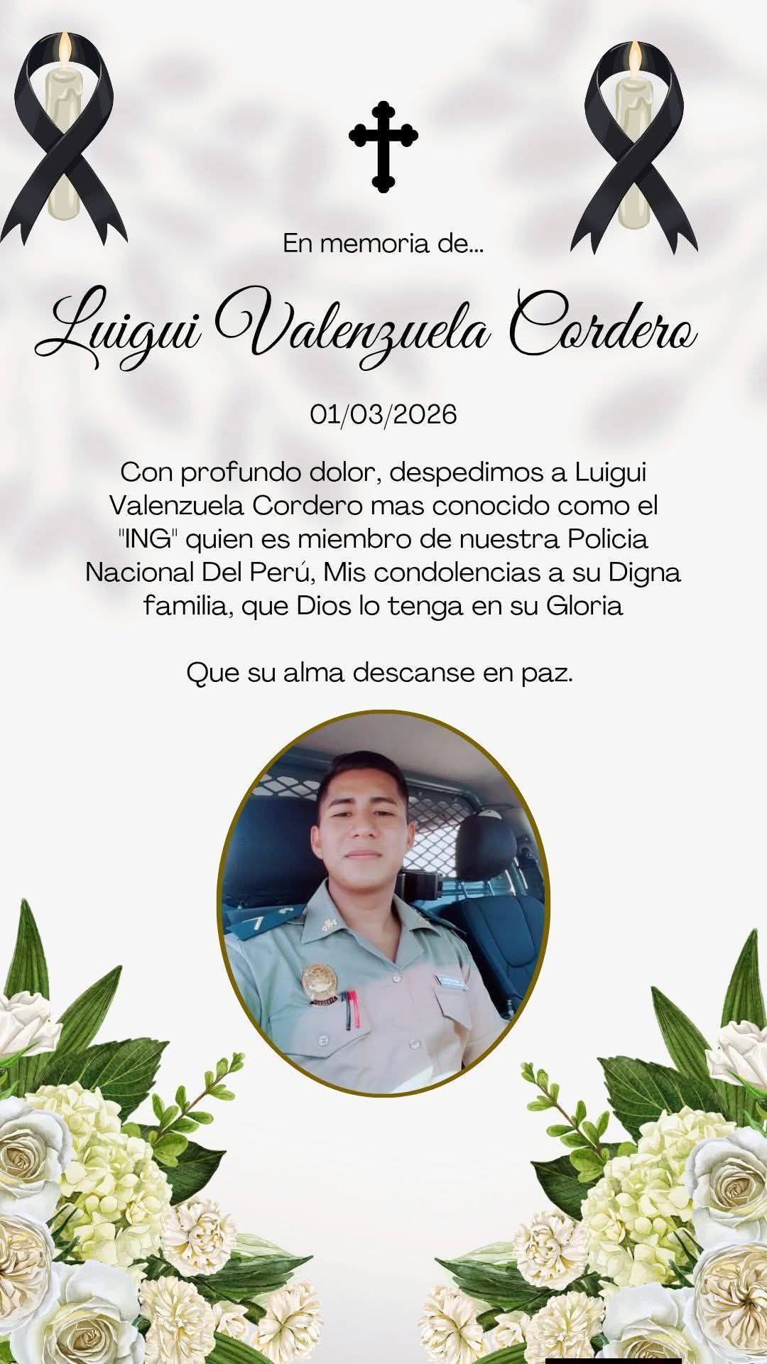El suboficial Luiggi Valenzuela Cordero, de 28 años y natural de Los Aquijes, llegó al lugar del accidente tras recibir una llamada de un familiar que le habría pedido ayuda para cuidar el camión dañado.