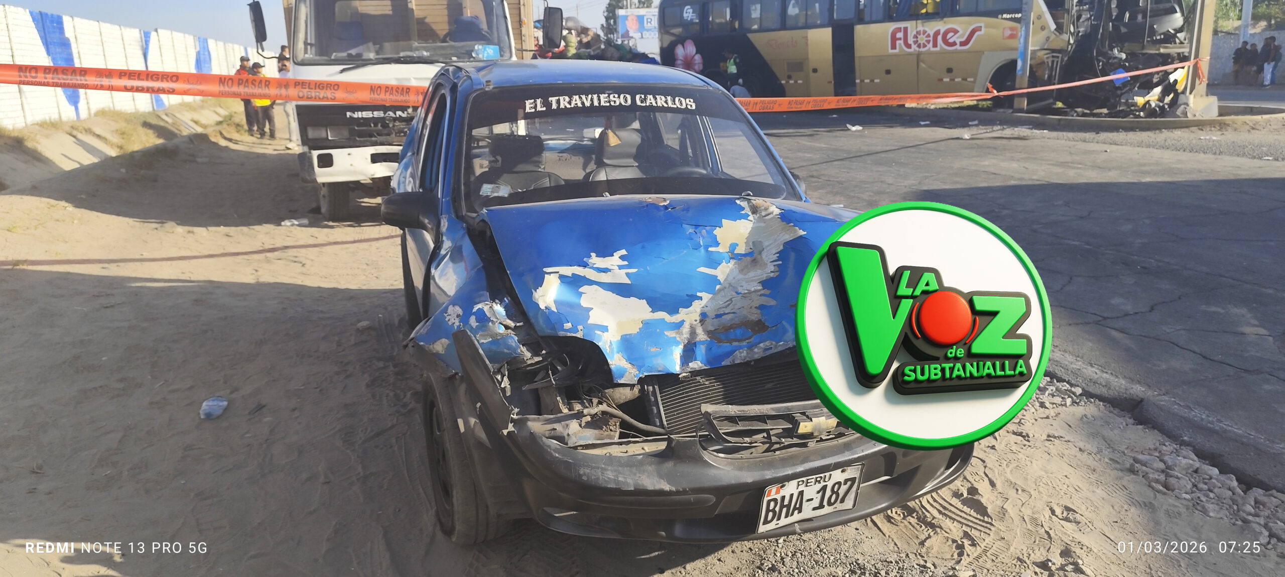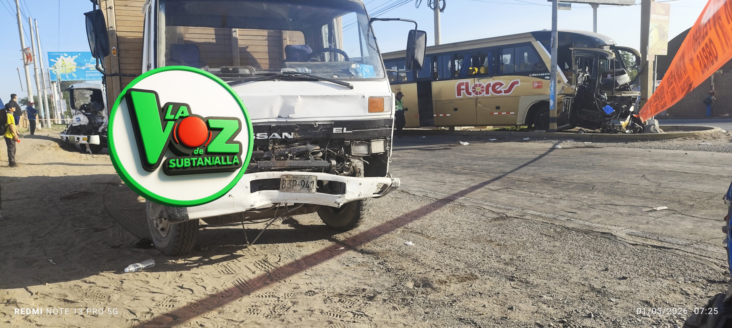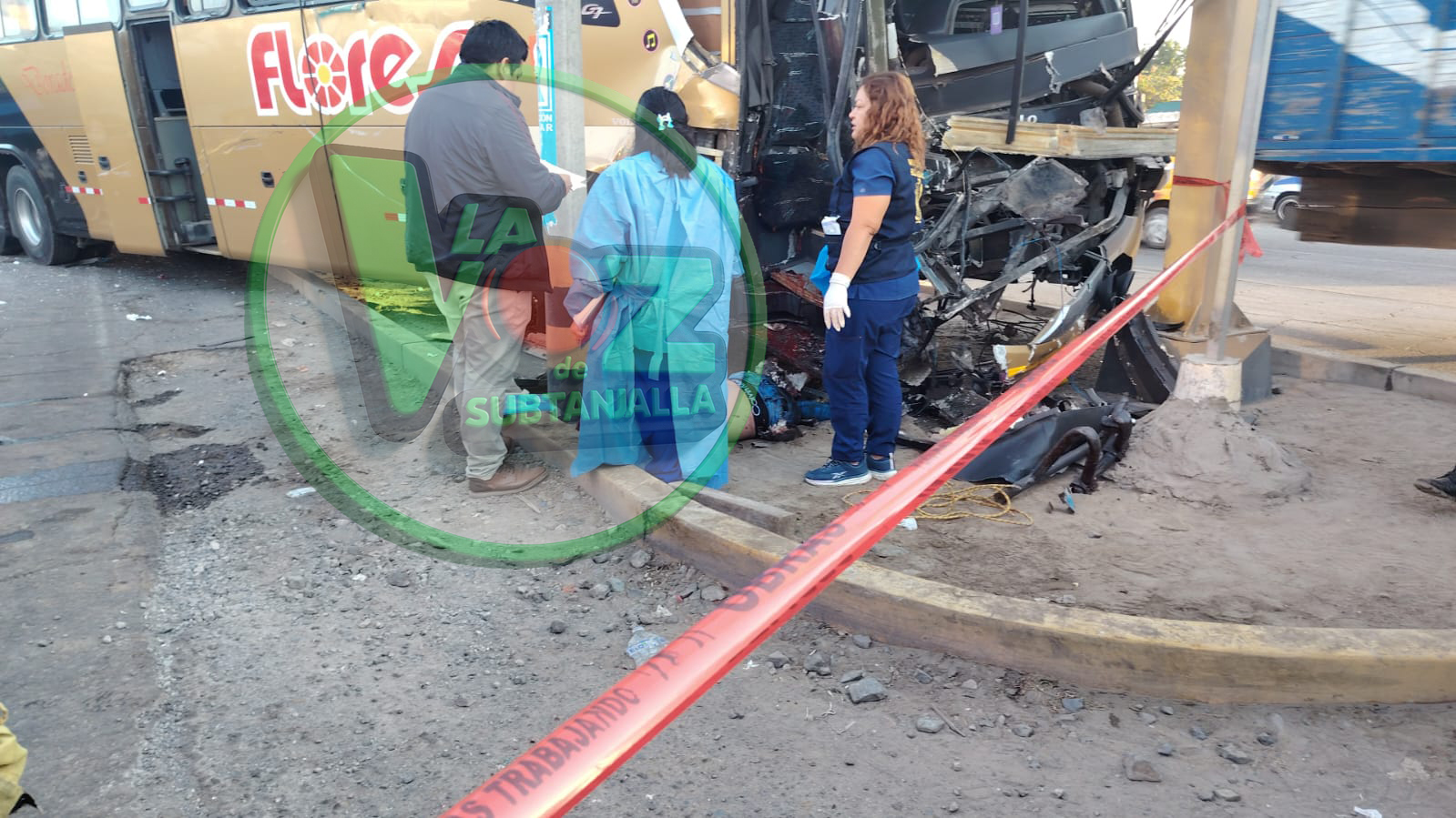 Sin embargo, su destino se tornó oscuro cuando, poco después de las 4 a.m., un bus de la empresa Flores Hermanos, que había comenzado su jornada laboral en Lima en horas de la noche del día anterior, se desvió y colisionó posteriormente contra el camión, arrastrando al PNP quien se encontraba al frente cuidando la unidad que trasladaba verduras dejandolo mal herido tras el impacto .