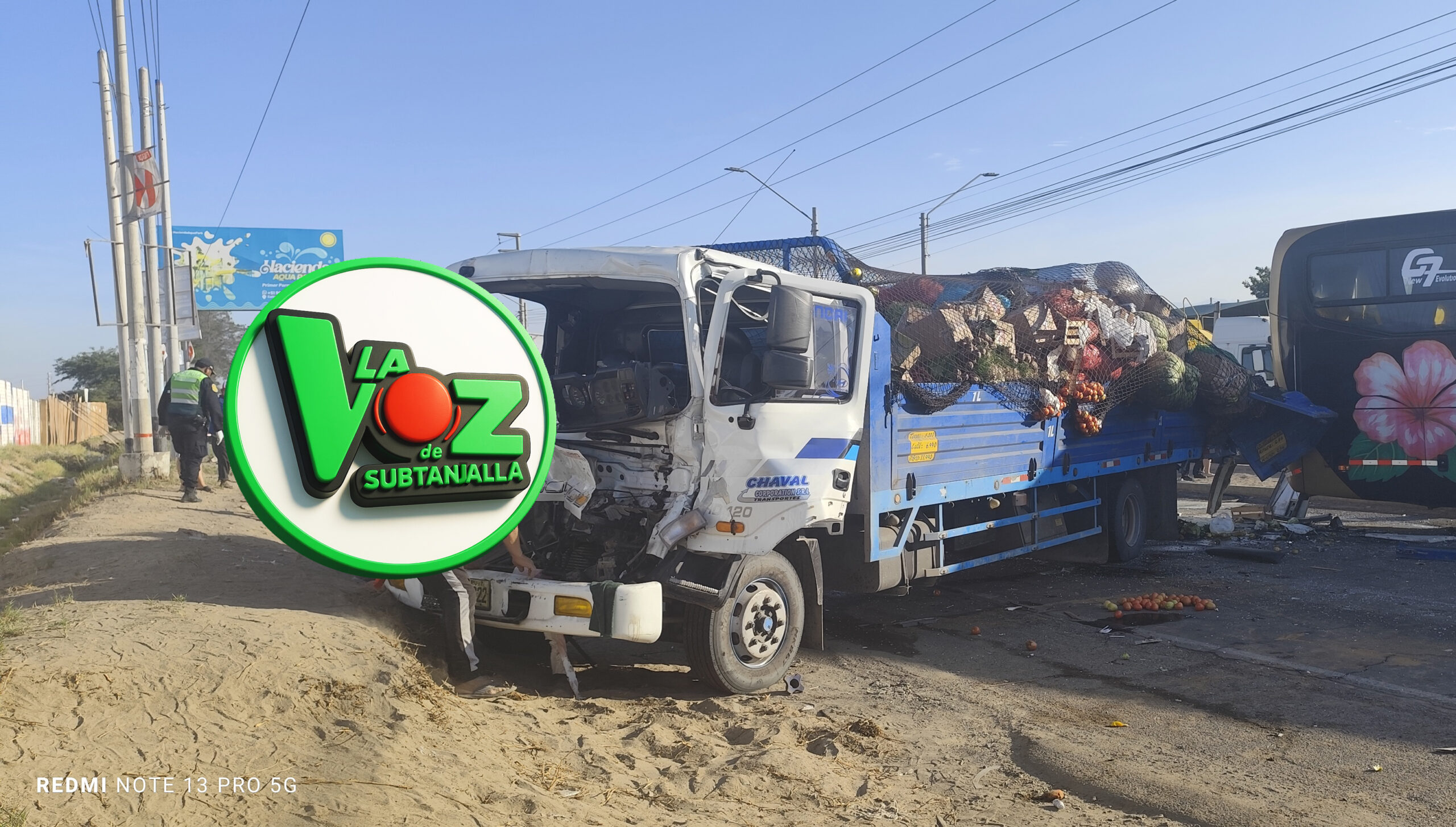 En ese crítico momento, un camión que transportaba verduras, identificado con la placa F5Y-822 y perteneciente a la empresa Transportes Chaval, impactó en cadena, afectando a los tres vehículos involucrados.