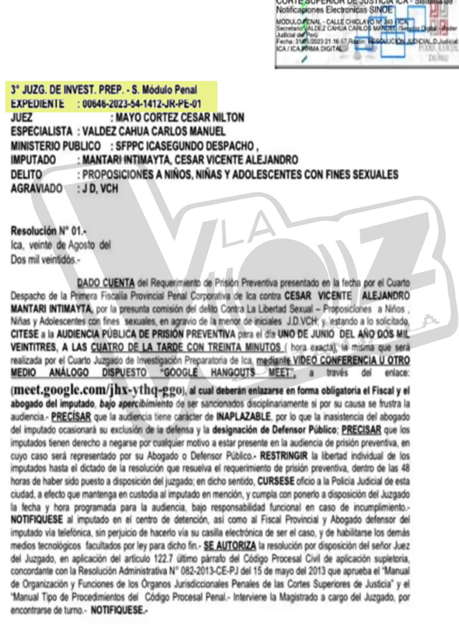 JUEZ ORDENA 9 MESES DE PRISIÓN PREVENTIVA PARA FUNCIONARIO QUE INTENTÓ SECUESTRAR A MENOR