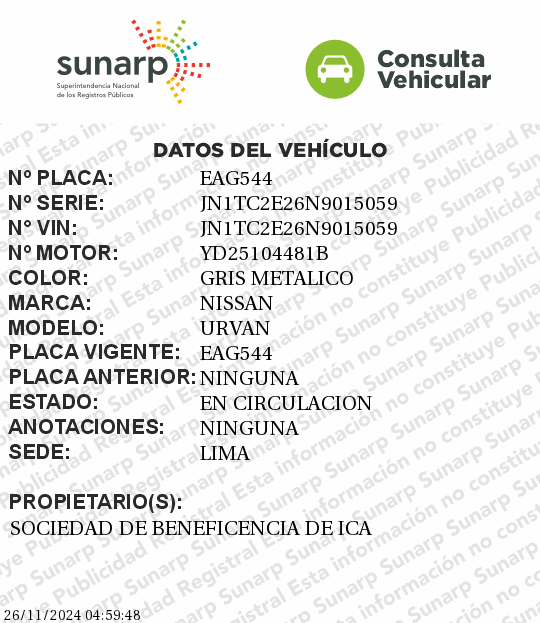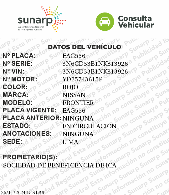 La camioneta de placa EAG-556 y la Urvan de placa EAG-544, valoradas en un total de USD 74,000, ahora están amenazadas por una deuda que bordea los S/ 9,967 soles (una de ellas ) solo en pagos de arbitrios, lo que ha llevado a cuestionamientos sobre la gestión de la actual administración de la beneficencia.