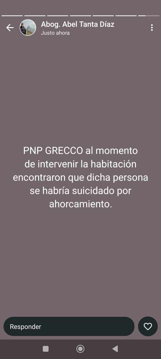 El suboficial de tercera Darwin Condori Antezana —acusado del feminicidio de Sheyla Cóndor— fue hallado muerto en el tercer piso en un hostal de San Juan de Lurigancho (SJL), según la información de la Policía Nacional del Perú (PNP). Ante ello, optaron por trasladarlo a la Clínica San Juan Bautista, pero se confirmó su deceso.