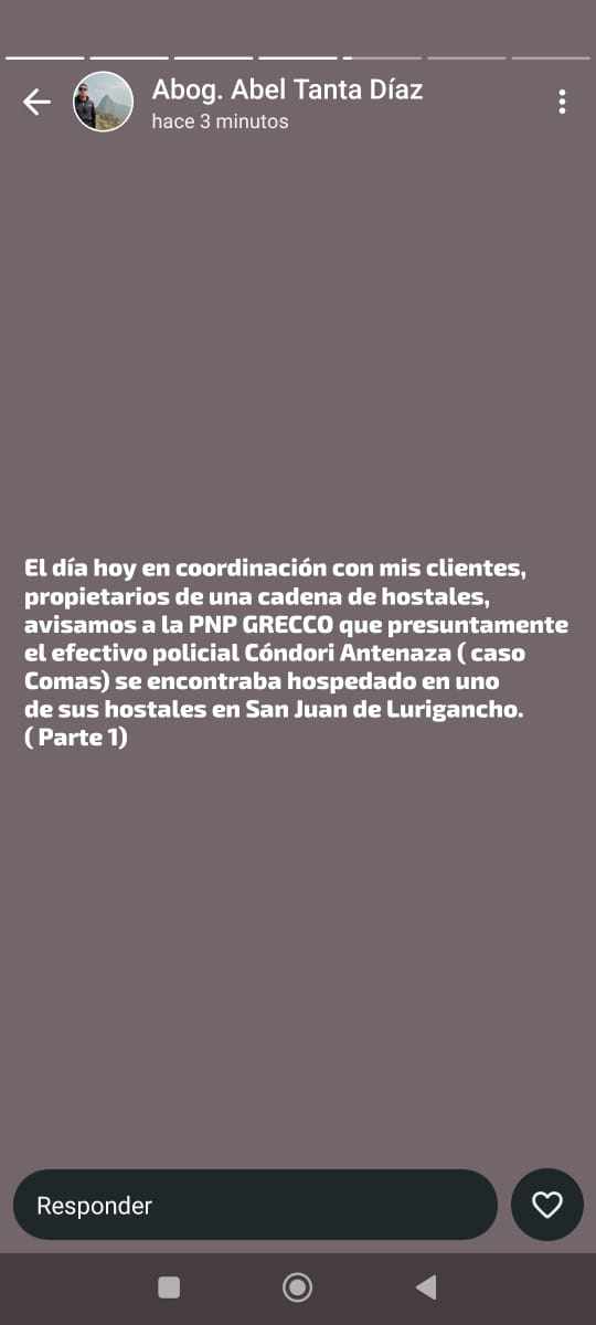 “Para informar que está en investigación por la División especializada. Nosotros tuvimos información de que esta persona que está comprometida en este delito grave habría estado en esta jurisdicción de San Juan de Lurigancho. Lo hemos ubicado y trasladado a esta clínica”, declaró el coronel Obando a Panamericana.