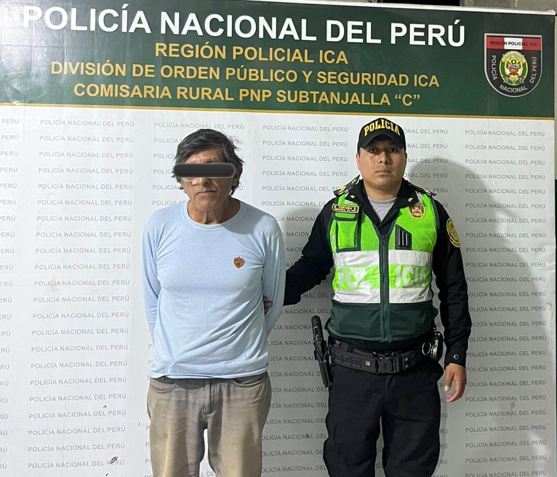 👉La Policía Nacional del distrito de Subtanjalla capturó a Jesús Manuel Cuadros Raymi, de 64 años, quien evadía la justicia durante años acusado de violación sexual a menor.