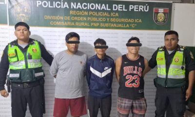 presuntos integrantes de la banda criminal denominada «Techeros de Subtanjalla», «Tripita Pajarín y Huacho» fueron intervenidos mientras cometían hurto agravado e inviolabilidad de domicilio en los inmuebles del distrito de Subtanjalla.