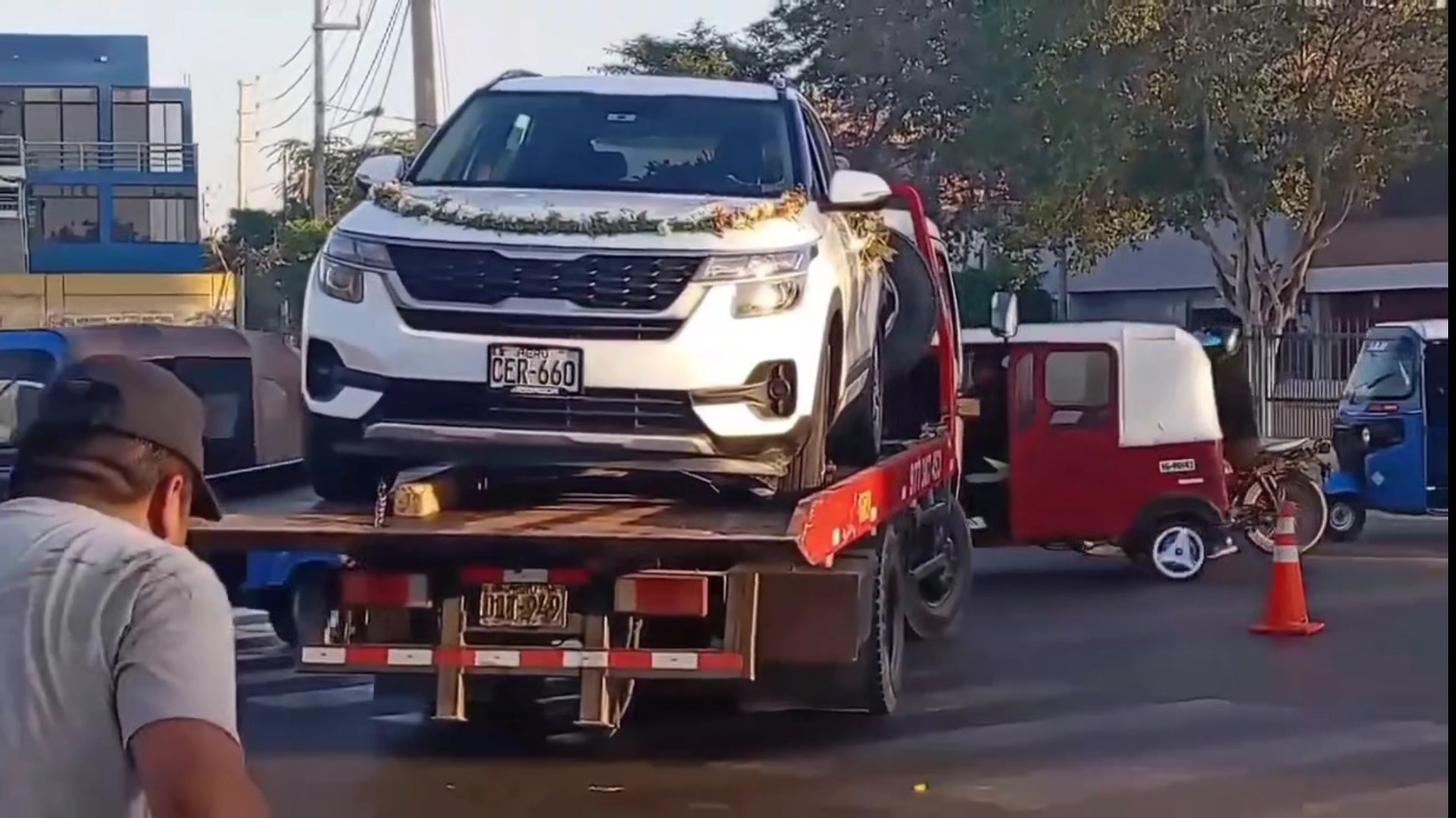La noche de ayer, un accidente de tránsito protagonizado por una camioneta que transportaba a una pareja de recién casados tuvo lugar en la avenida Cutervo, a la altura del campo ferial. Según informaciones preliminares, el conductor de la unidad, un Kia blanco con placa de rodaje CER-660 perteneciente a Luis Raúl Rodríguez Dávilos, habría perdido el control del vehículo, lo que resultó en que invadiera inesperadamente la ciclovía.