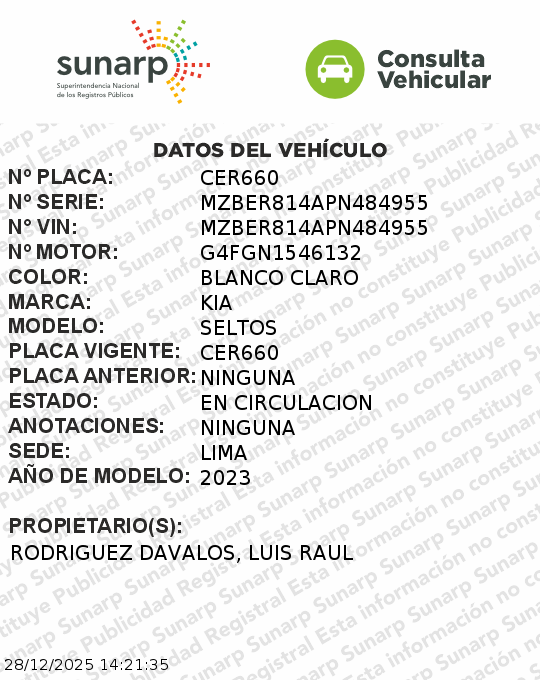 Durante la intervención se incautaron tres equipos celulares y un vehículo de placa B9C-567, marca Brilliance, modelo Zhonghua, color rojo, que habría sido utilizado para facilitar el accionar delictivo.