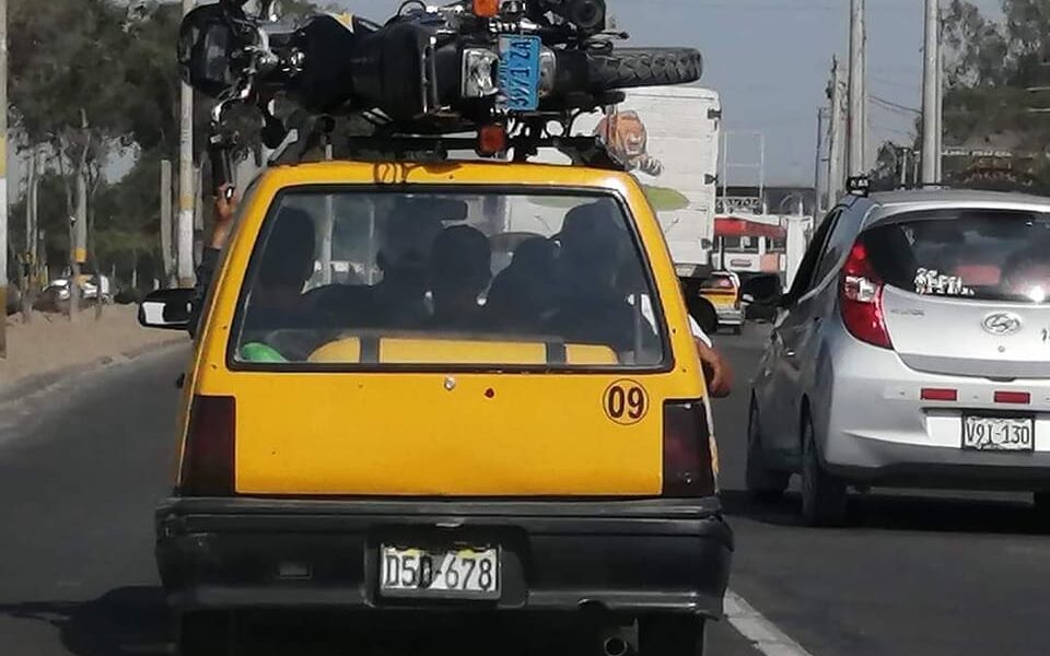 Una pesada moto lineal es trasladada con un frágil auto tico en su parrilla y sin ningún tipo de amarre. Tampoco toma en cuenta ninguna medida...