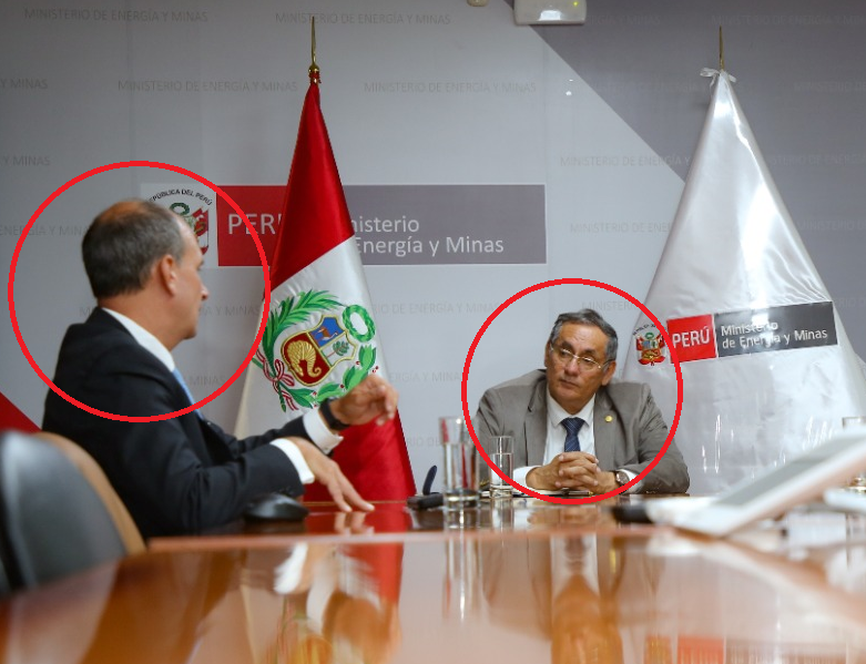 Otras de las visitas que tiene registrada Brendan Oviedo al MINEM, es el 24 de enero pasado, donde conversó directamente con el ministro Oscar Vera Gargurevich. Esta visita se realizó a dos meses de que el congresista Kamiche presentará el proyecto lobista a la Comisión del Congreso.