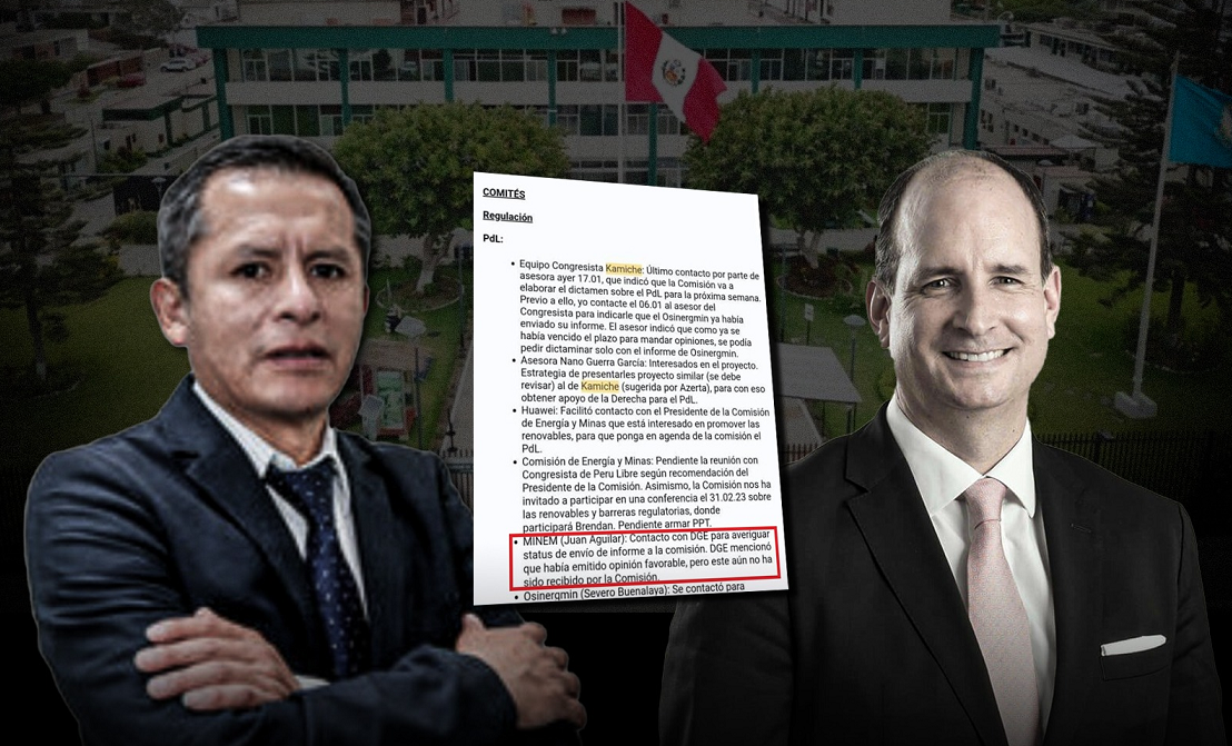 En el correo de la SPR del 18 de enero pasado, al cual tuvimos acceso, aparte de mencionarse algunas acciones lobistas, también se detalla nombres de funcionarios del Ejecutivo y del Congreso con quienes la SPR estaría trabajando. Entre los nombres aparecen los cuestionados congresistas Roberto Kamiche y Jorge Flores Ancachi (investigado en el caso “Los Niños”), también figuran Severo Buenalaya de Osinergmin y Juan Aguilar Molina, Director General de Electricidad (DGE). Junto al nombre de Aguilar Molina en el correo se lee: “Contacto DGE para averiguar status de envío de informe a la comisión. DGE mencionó que había emitido opinión favorable, pero este aún no ha sido recibido por la comisión”.