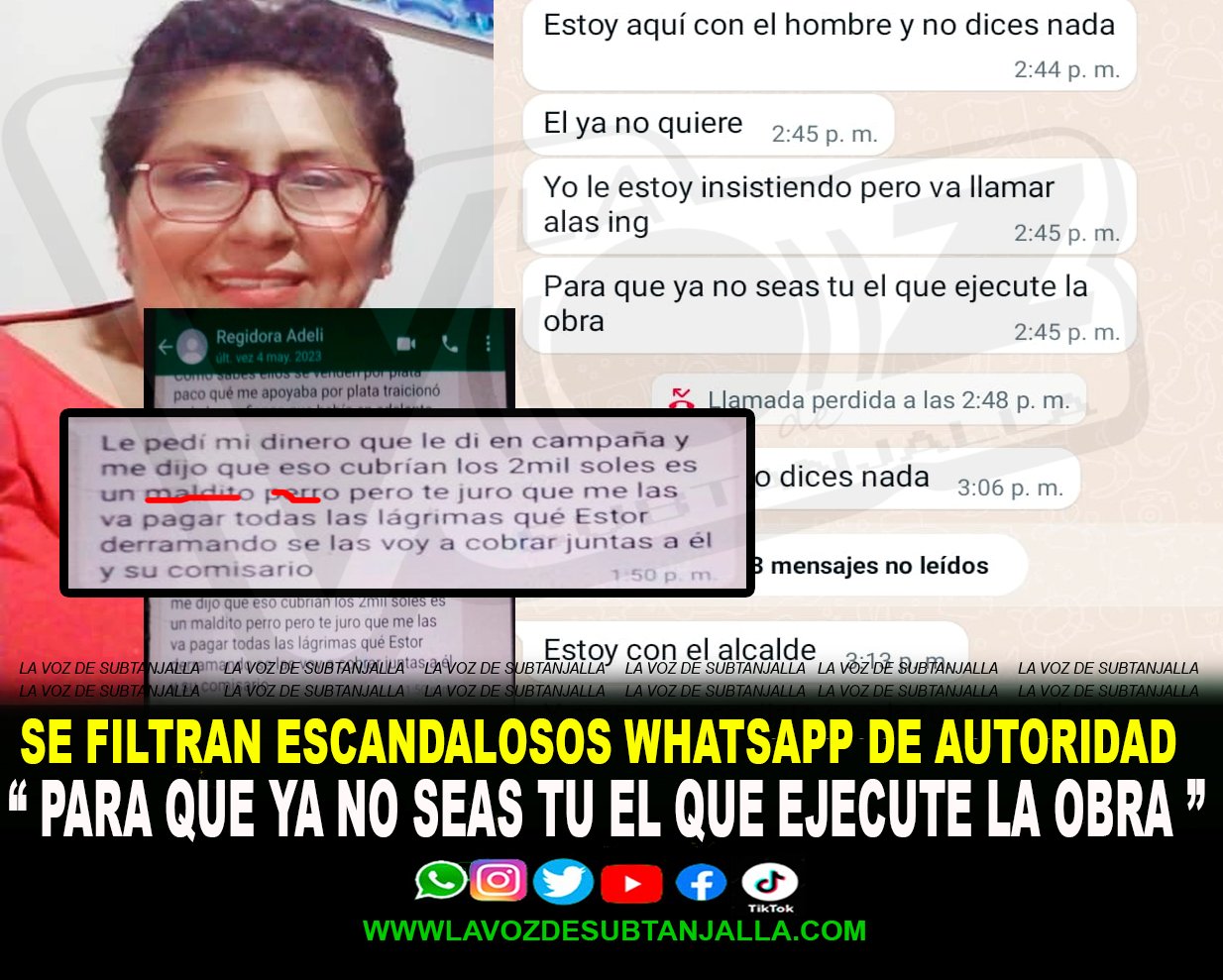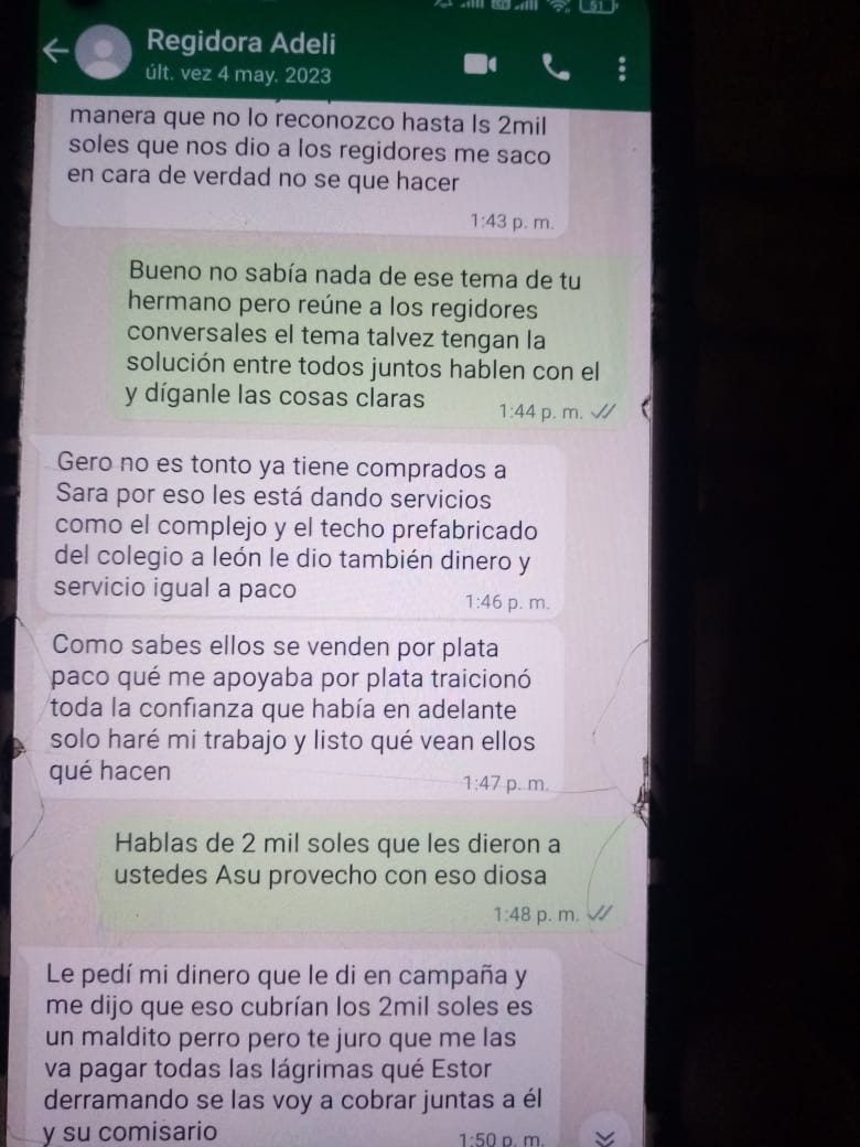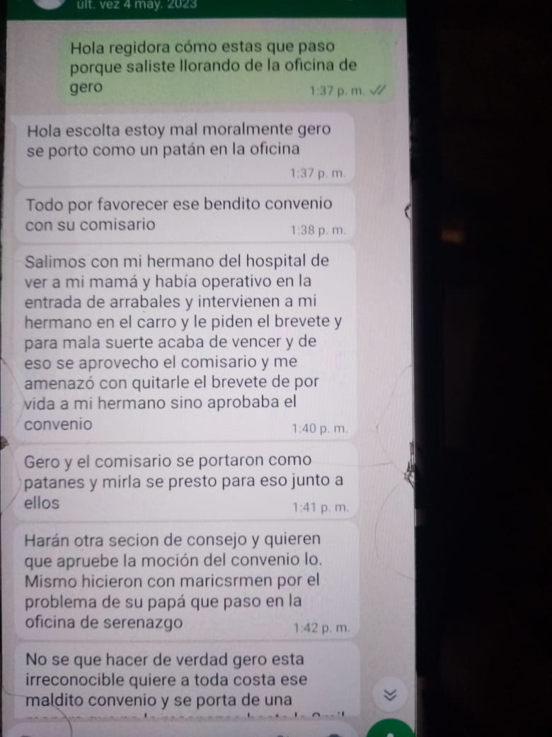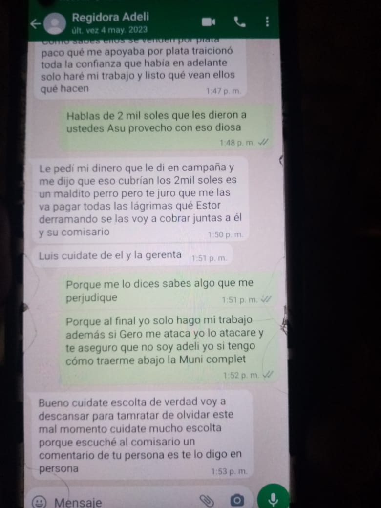 SE FILTRAN ESCANDALOSOS WHATSAPP QUE INVOLUCRARIAN A REGIDORA DE LA COMUNA DEL DISTRITO DE SUBTANJALLA
